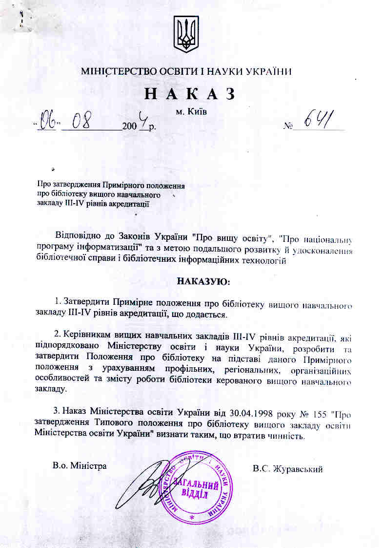 наказом МОН України